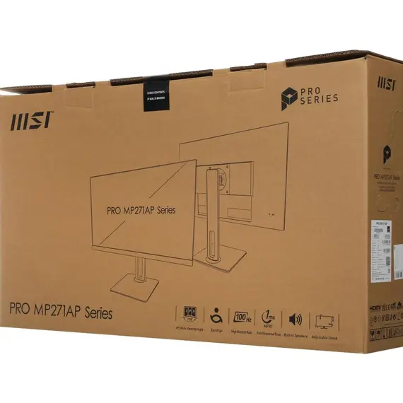 Монитор MSI Pro MP271AP 27", IPS, 1920x1080 (Full HD), 4 мс, 100 Гц, 300 кд/м2, VGA, HDMI, DisplayPort, чёрный (9S6-3PA29T-086)