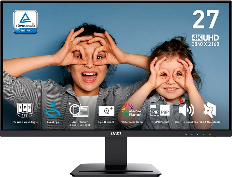Монитор MSI Pro MP273U 27", IPS, 3840x2160 (4K UHD), 4 мс, 60 Гц, 300 кд/м2, 2xHDMI, DisplayPort, динамики, чёрный (9S6-3PB4CH-230)