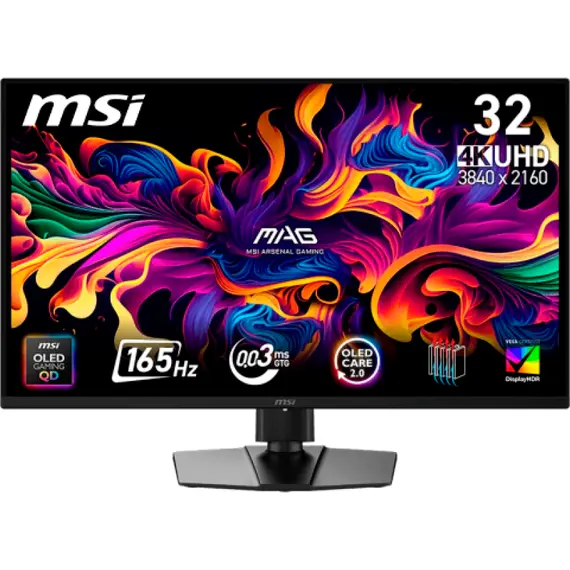 Монитор MSI MAG 322UP E16 31.5", QD-OLED, 3840x2160 (4K UHD), 0.03 мс, 165 Гц, 250 кд/м2, 2xHDMI, DisplayPort, USB Type-C, чёрный (9S6-3DD29A-048)