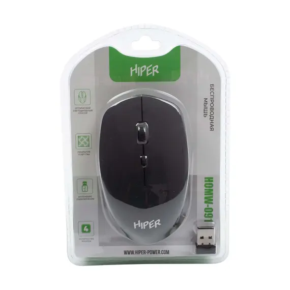 Мышь HIPER беспроводная 1600dpi, черный, USB, 4кнп (HOMW-091)