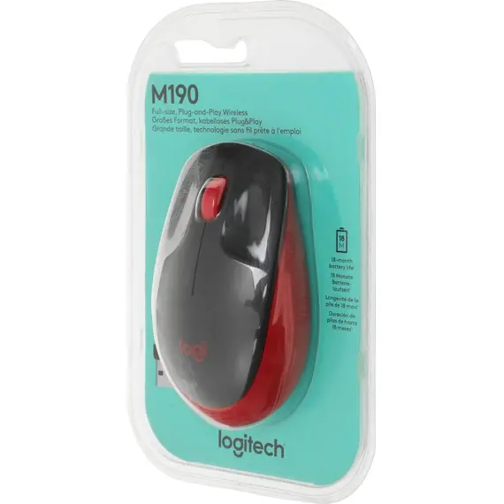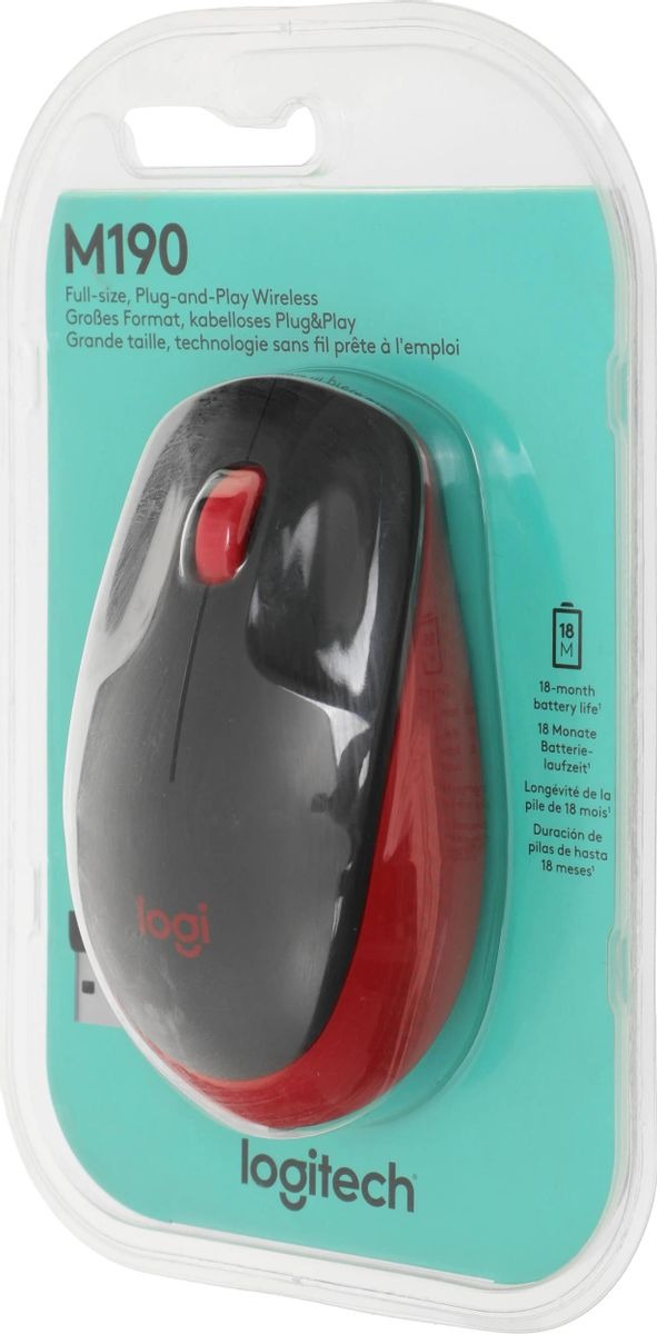 Беспроводная мышь LOGITECH M190 Red — это отличное сочетание яркого стиля, комфорта, функциональности и универсальности, которое обеспечит вам качественный ввод данных и свободу движений для любых повседневных задач.