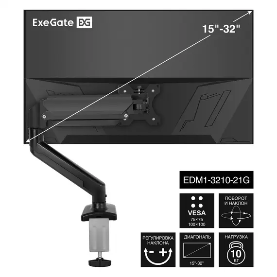 Кронштейн для монитора EXEGATE настольный EDM1-3210-21G (для одного монитора 15"-32", черный) (EX297361RUS)