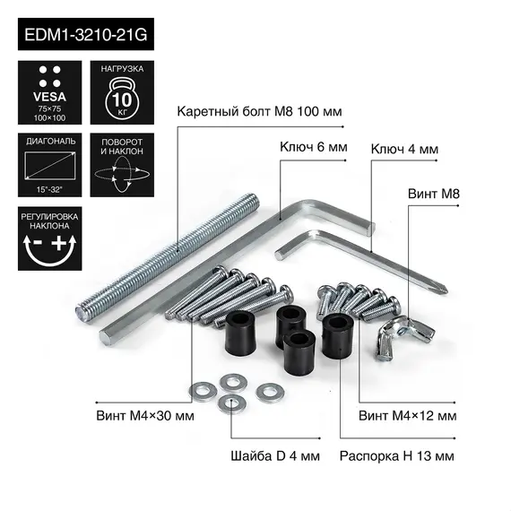 • Стандарты VESA: Поддерживает крепления 75x75 мм и 100x100 мм.