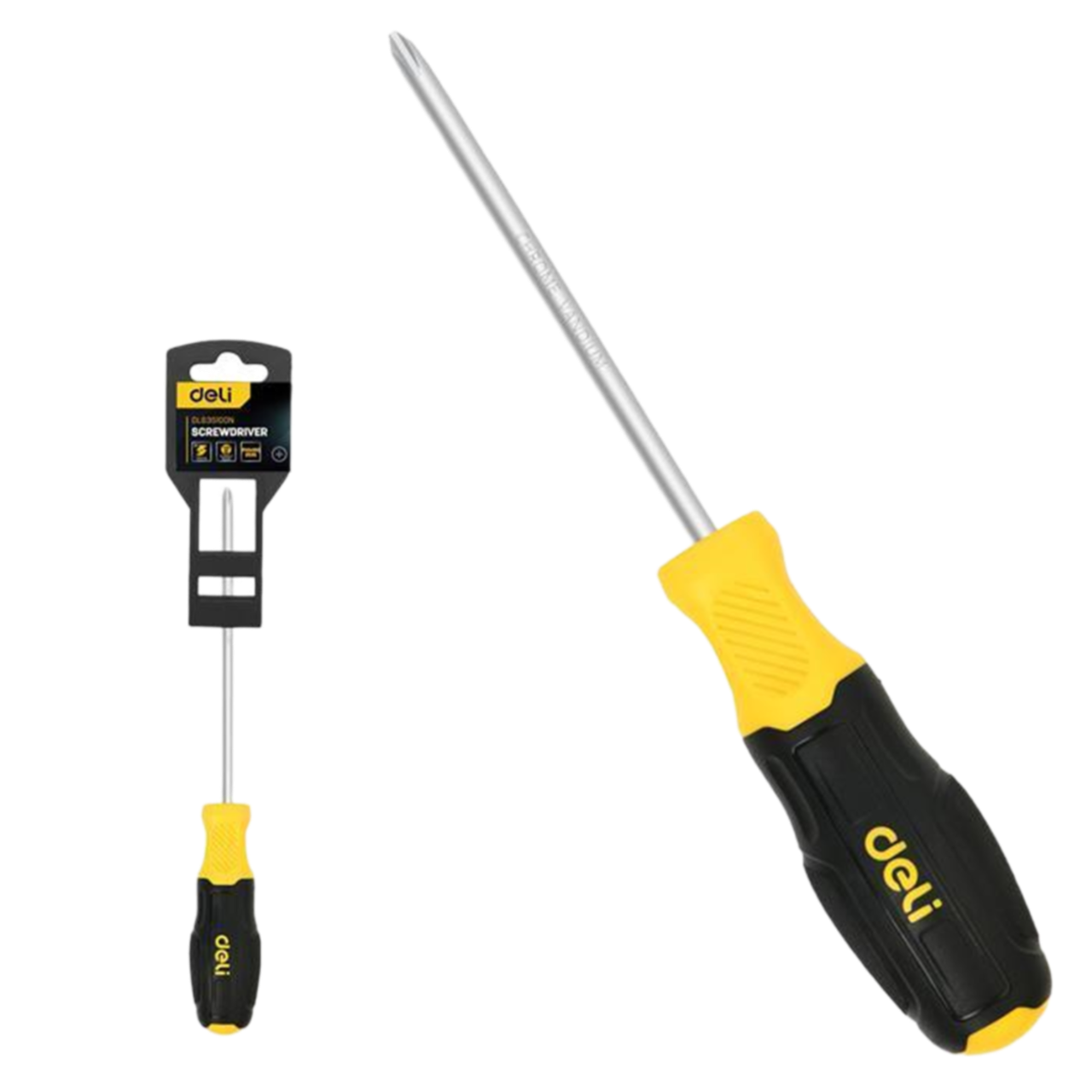 Отвертка DELI Крестовая PH1x100мм сталь Cr-V, двухкомпонентная прорезиненная рукоять (DL635100N)