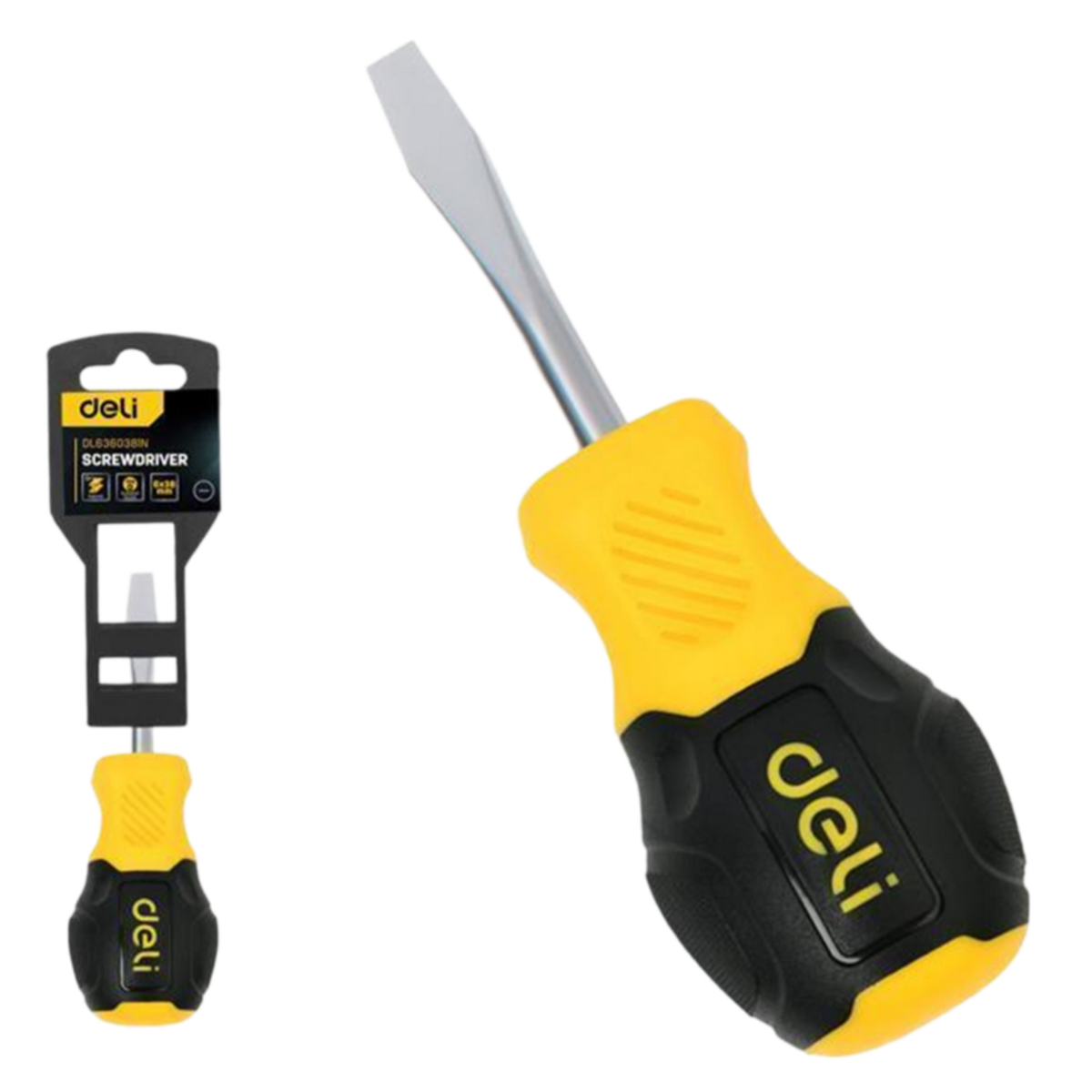 Отвертка DELI Шлицевая 6х38мм сталь Cr-V, двухкомпонентная прорезиненная рукоять (DL6360381N)