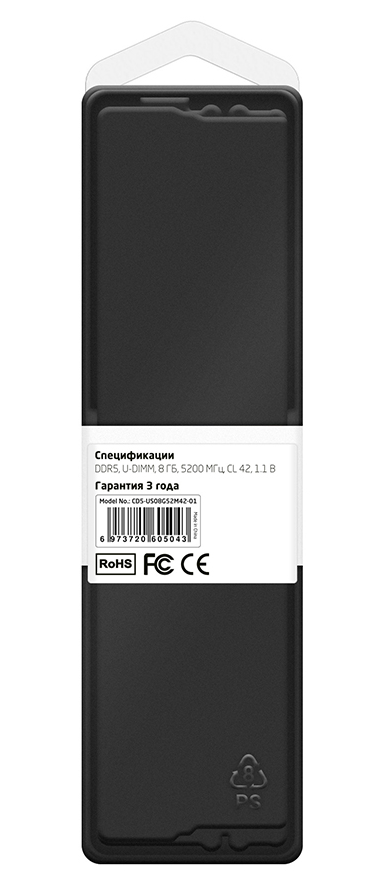 Память CBR 8 Гб, DDR5 DIMM, 5200 МГц 1 модуль, 41600 Мб/с, CL42, 1.1 В (CD5-US08G52M42-01)