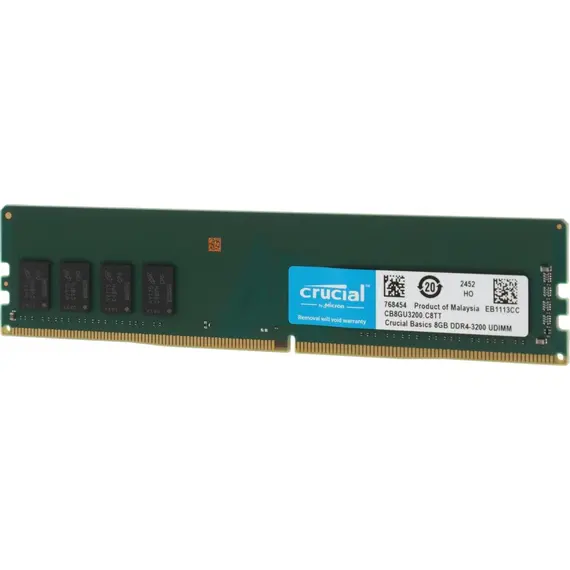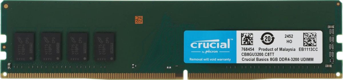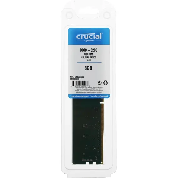 Память CRUCIAL 8 Гб, DDR4 DIMM, 3200 МГц, Basics 1 модуль, 25600 Мб/с, CL19, 1.2 В (CB8GU3200)