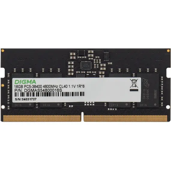 Память DIGMA 16 Гб, DDR5 SO-DIMM, 4800 МГц 1 модуль, 38400 Мб/с, CL40, 1.1 В (DGMAS54800016S)