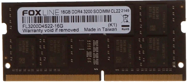 Память FOXLINE 16 Гб, DDR4 SO-DIMM, 3200 МГц 1 модуль, 25600 Мб/с, CL22, 1.2 В (FL3200D4S22S-16G)