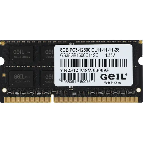 Память GEIL 8 Гб, DDR3 SO-DIMM, 1600 МГц, 1 модуль, 12800 Мб/с, CL11, 1.35 В (GS38GB1600C11SC)