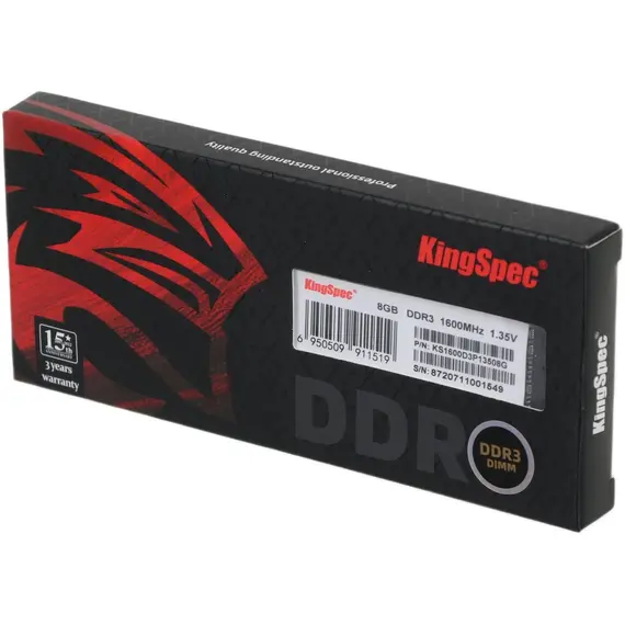 Память KINGSPEC 8 Гб, DDR3 DIMM, 1600 МГц 1 модуль, 12800 Мб/с, CL11, 1.35 В (KS1600D3P13508G)