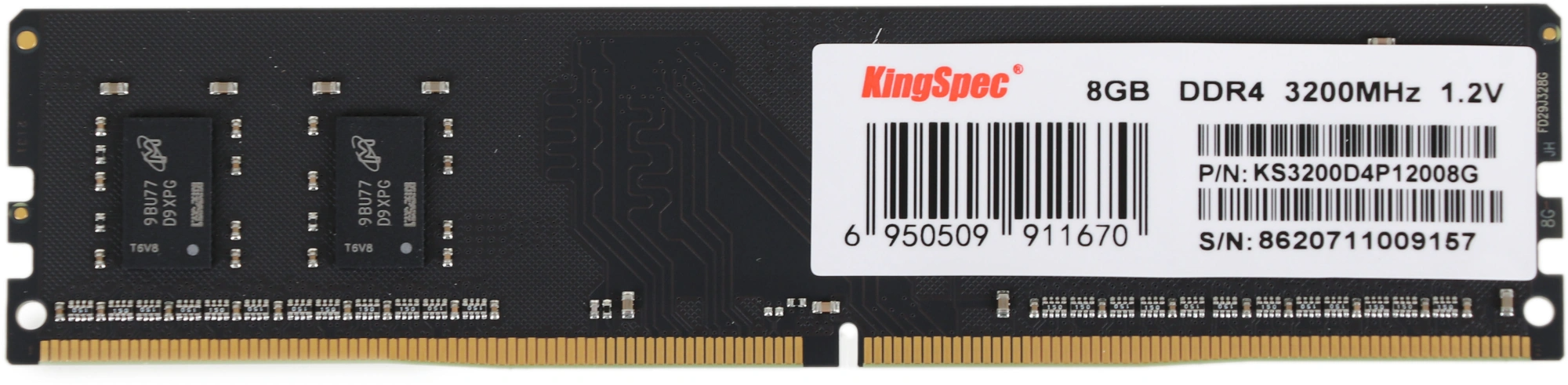 Память KINGSPEC 8 Гб, DDR4 DIMM, 3200 МГц 1 модуль, 25600 Мб/с, CL17, 1.2 В (KS3200D4P12008G)