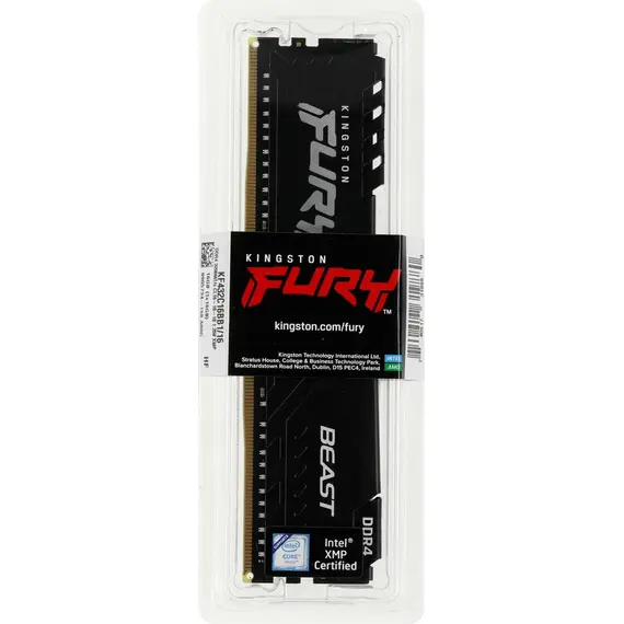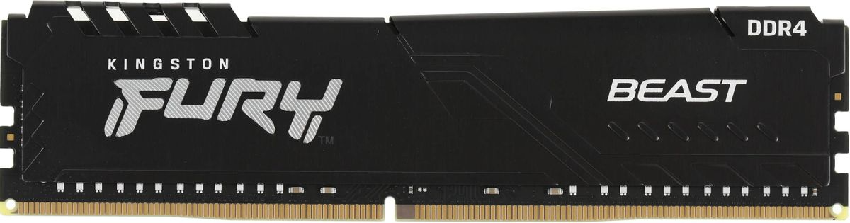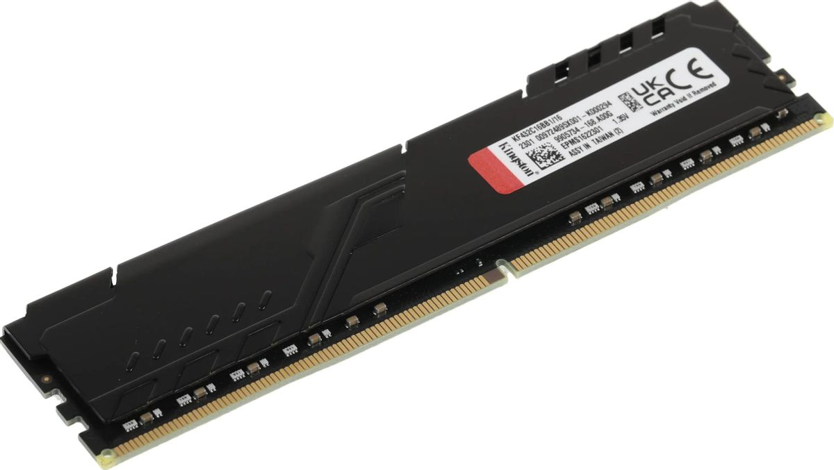 Память KINGSTON 16 Гб, DDR4 DIMM, 3200 МГц, FURY Beast Black 1 модуль, 25600 Мб/с, CL16, 1.35 В, XMP, радиатор (KF432C16BB1/16)