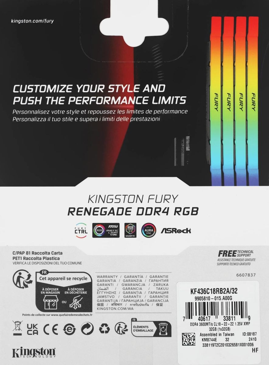 - Премиум-Качество: Продукция Kingston проходит 100% тестирование на заводе, а серия FURY Renegade специально оптимизирована для работы на предельных режимах. Вы получаете исключительную надежность и пожизненную гарантию.