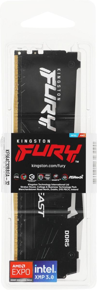 • Эффектная RGB-подсветка: Модуль оснащен яркой и плавной RGB-подсветкой с фирменной технологией Kingston FURY CTRL и функцией Infrared Sync Technology для идеальной синхронизации световых эффектов без проводов.
