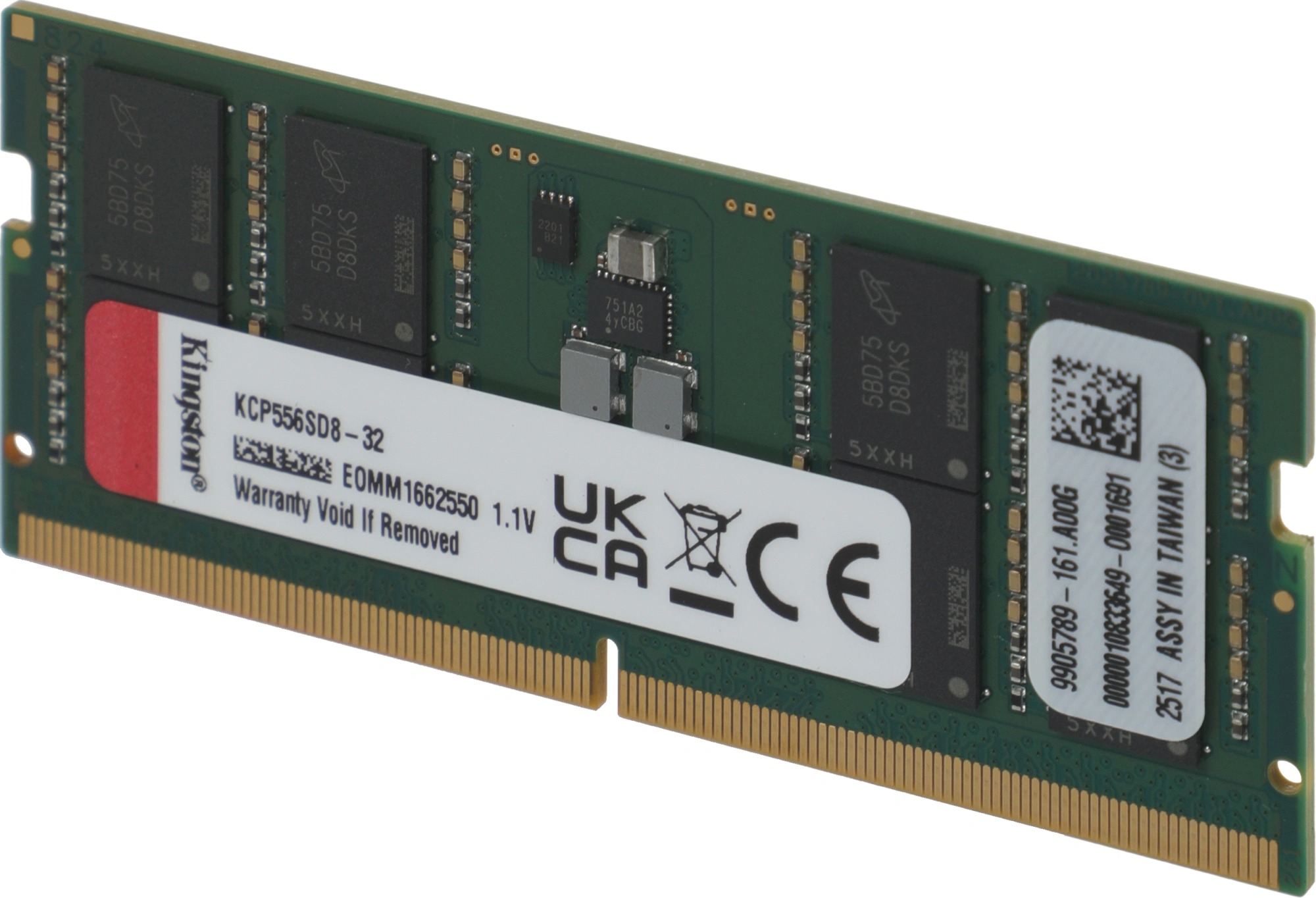 Память KINGSTON 32 Гб, DDR5 SO-DIMM, 5600 МГц, Branded 1 модуль, 44800 Мб/с, CL46, 1.1 В (KCP556SD8-32)