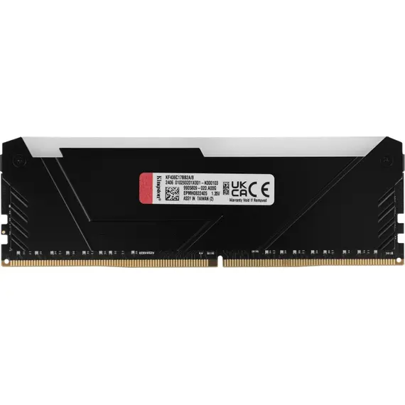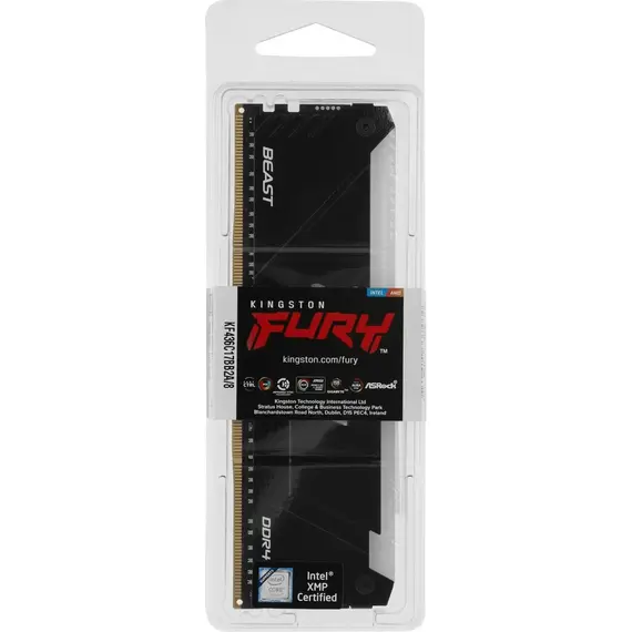 Память KINGSTON 8 Гб, DDR4 DIMM, 3600 МГц, FURY Beast RGB Black 1 модуль, 28800 Мб/с, CL17, 1.35 В, XMP, радиатор, подсветка (KF436C17BB2A/8)