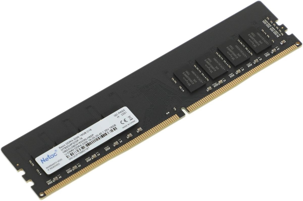 Память NETAC 16 Гб, DDR4 DIMM, 3200 МГц, Basic 1 модуль, 25600 Мб/с, CL16, 1.35 В (NTBSD4P32SP-16)