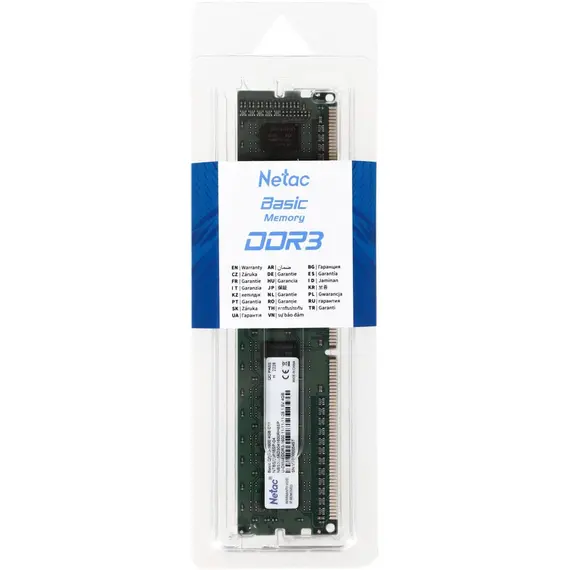 Память NETAC 4 Гб, DDR3 DIMM, 1600 МГц, Basic 1 модуль, 12800 Мб/с, CL11, 1.5 В (NTBSD3P16SP-04)