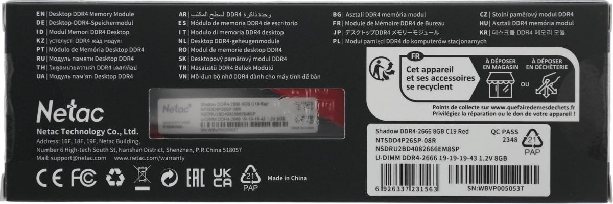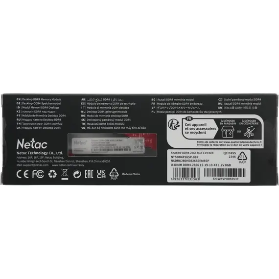 Благодаря сочетанию оптимального объема 8 Гб, универсальной частоты 2666 МГц, эффективного охлаждения и бескомпромиссного качества Netac Shadow Red, этот модуль памяти является идеальным выбором для создания надежной, эффективной и стильной системы.