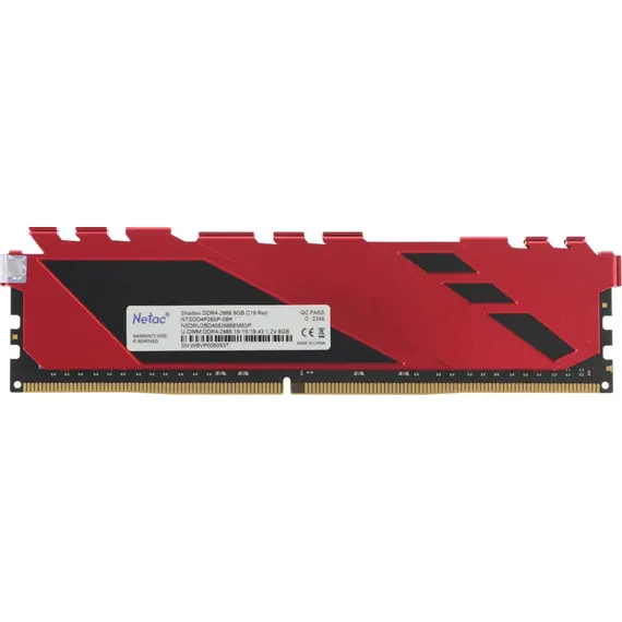 Память NETAC 8 Гб, DDR4 DIMM, 2666 МГц, Shadow Red 1 модуль, 21300 Мб/с, CL19, 1.2 В, радиатор (NTSDD4P26SP-08R)