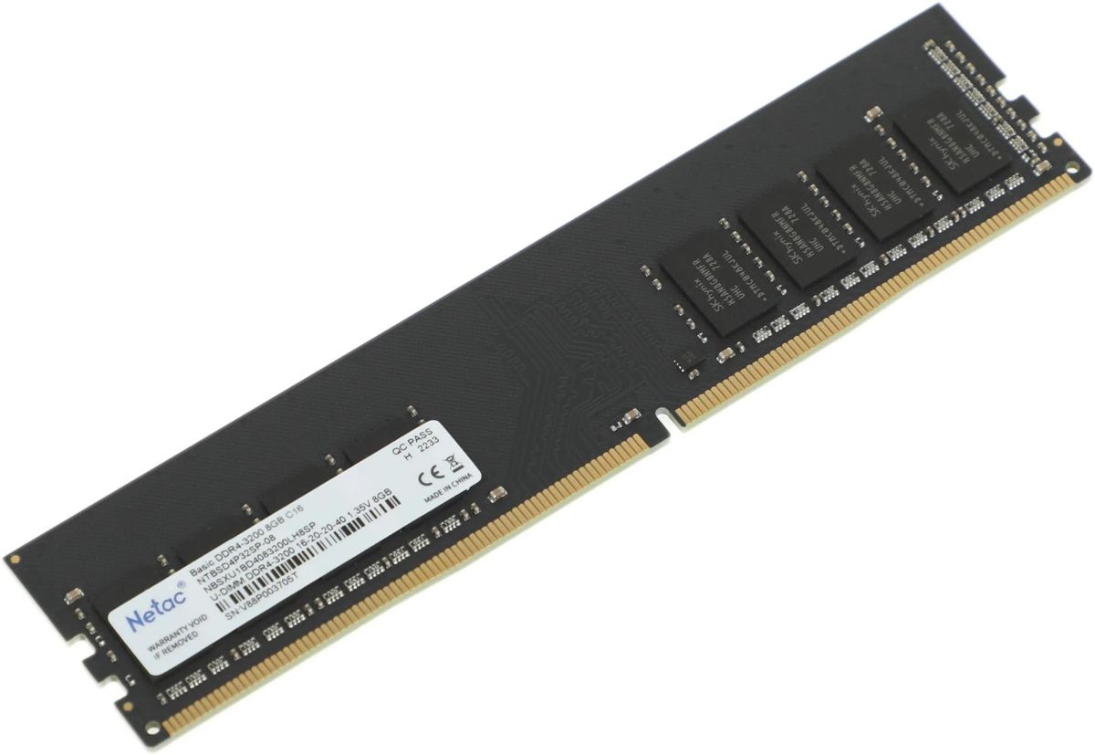 Память NETAC 8 Гб, DDR4 DIMM, 3200 МГц, Basic 1 модуль, 25600 Мб/с, CL16, 1.35 В (NTBSD4P32SP-08)