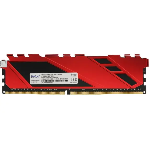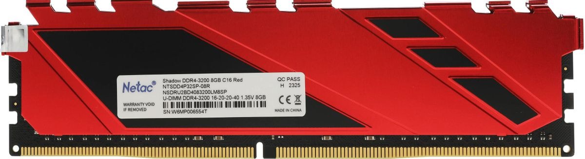 Память NETAC 8 Гб, DDR4 DIMM, 3200 МГц, Shadow Red 1 модуль, 25600 Мб/с, CL16, 1.35 В, радиатор (NTSDD4P32SP-08R)