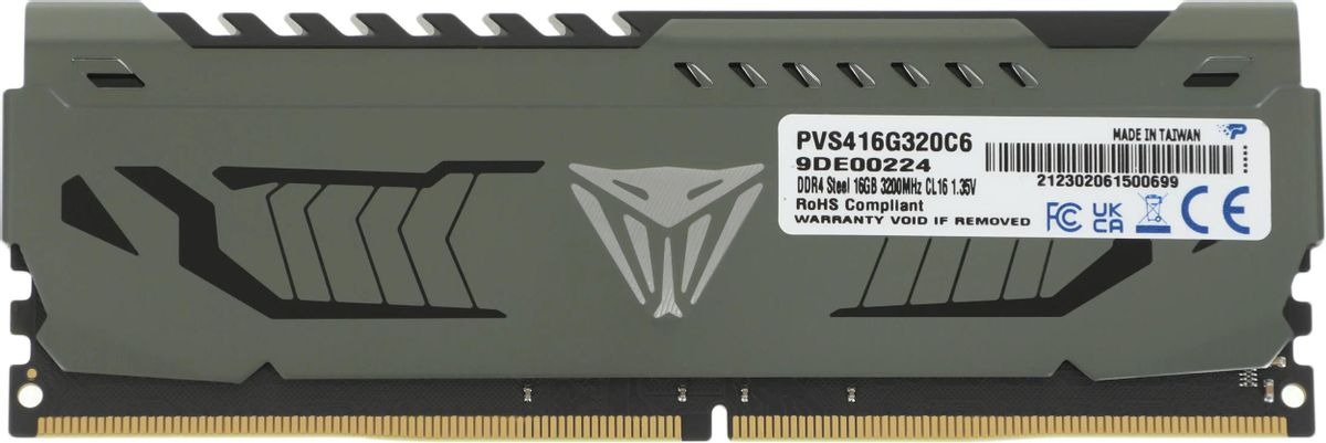 Память PATRIOT MEMORY 16 Гб, DDR4 DIMM, 3200 МГц, Viper Steel 1 модуль, 25600 Мб/с, CL16, 1.35 В, радиатор (PVS416G320C6)