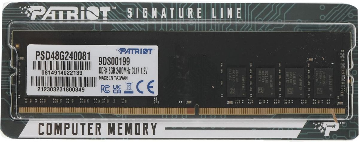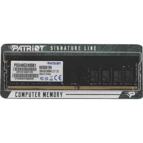 Память PATRIOT MEMORY 8 Гб DDR4 DIMM 2400 МГц (PSD48G240081) из серии Signature Line — это надежное, проверенное временем решение для модернизации или сборки стабильного и экономичного компьютера. Этот модуль памяти обеспечит необходимую производительность для повседневных задач, офисных приложений и просмотра мультимедиа, а также станет отличным дополнением к системам на базе процессоров предыдущих и базовых современных поколений.