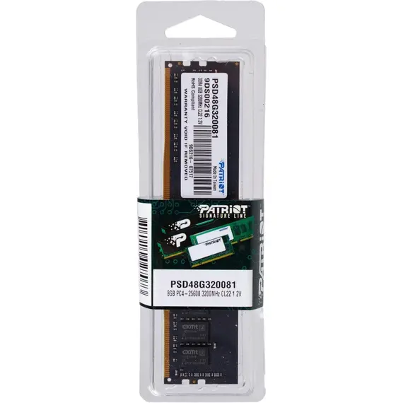 Память PATRIOT MEMORY 8 Гб, DDR4 DIMM, 3200 МГц, Signature Line 1 модуль, 25600 Мб/с, CL22, 1.2 В (PSD48G320081)