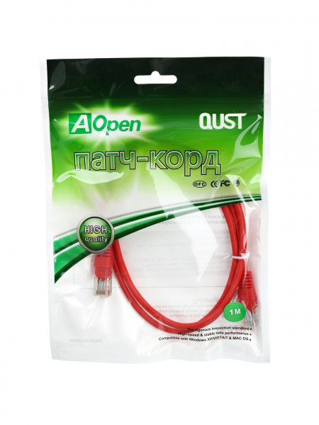 Патч-корд AOPEN CABLE литой UTP кат.5е 1м красный QUST (ANP511_1M_R)