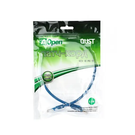 Патч-корд AOPEN CABLE UTP кат.5е 0,5м синий QUST (ANP511_0.5M_B)