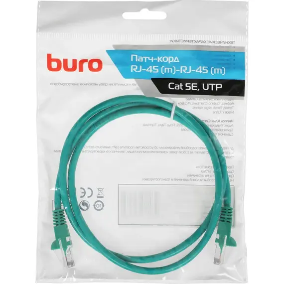 Патч-корд BURO UTP 4 пары cat.5E CCA molded 1м зеленый RJ-45 (m)-RJ-45 (m) (UTP-5E-1M-GR)