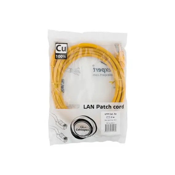 Патч-корд CABLEXPERT медный UTP кат.5, 2м, литой, многожильный (желтый) (PP10-2M/Y)