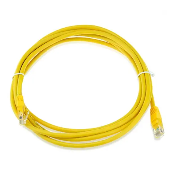 - Цветная маркировка (Желтый): Яркий желтый цвет кабеля упрощает визуальную идентификацию и управление кабельной инфраструктурой (например, можно использовать желтый для обозначения определенных типов трафика или соединений), что повышает эффективность обслуживания сети.