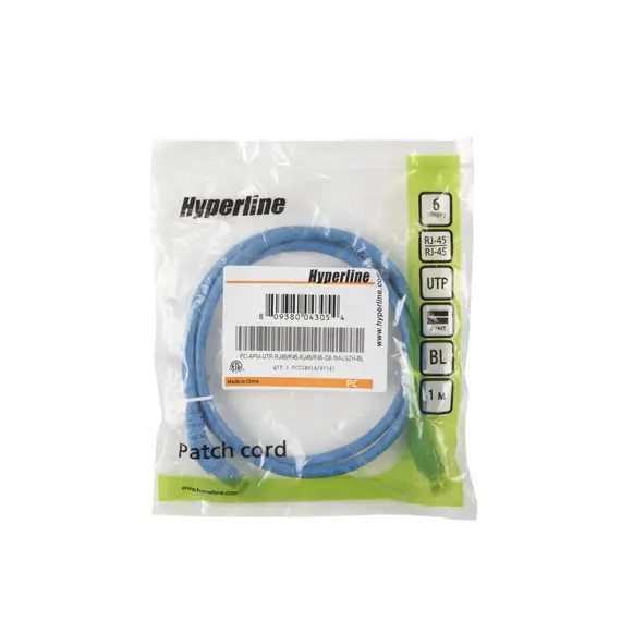Патч-корд HYPERLINE U/UTP угловой, Cat.6 (100% Fluke Component Tested), LSZH, 1 м, синий (PC-APM-UTP-RJ45/R45-RJ45/R45-C6-1M-LSZH-BL)