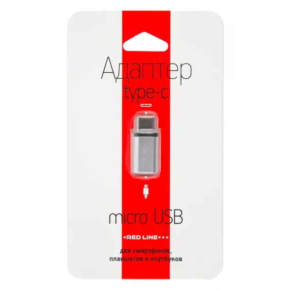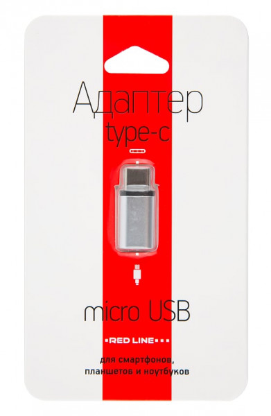 Переходник REDLINE micro USB B (f) USB Type-C (m) серебристый (УТ000013668)