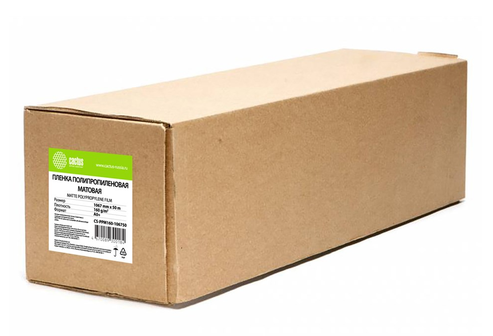 Пленка CACTUS 42"(A0+) 1067мм-50м/160г/м2/белый матовое для струйной печати втулка:50.8мм (2") (CS-PPM160-106750)
