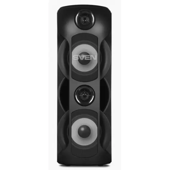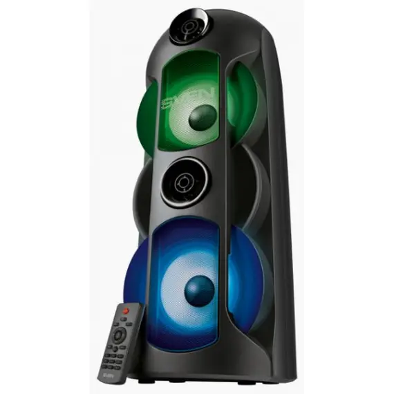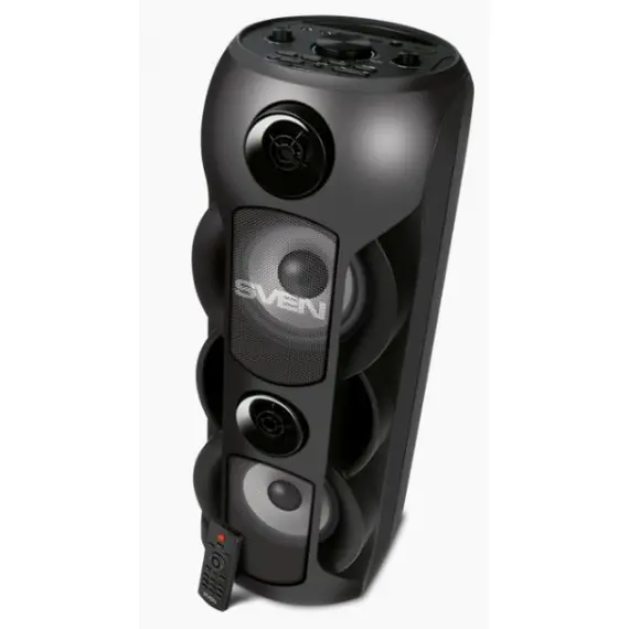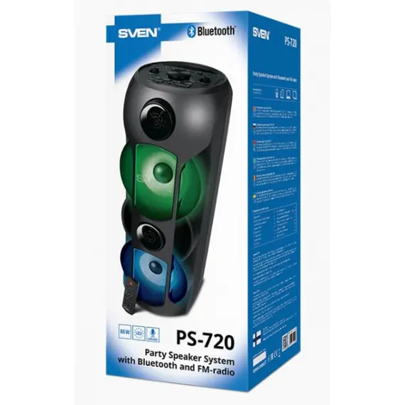 Портативная колонка SVEN PS-720 2.0 чёрные (2x40W, mini Jack, USB, Bluetooth, FM, micro SD, LED-дисплей, ПДУ, USB Type-C, 2 x 4400 мA, LED подсветка) (SV-019600)