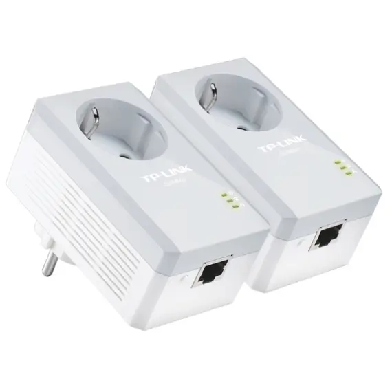 Powerline адаптер TP-LINK Powerline Ethernet , 500 Мбит/с со встроенной розеткой, Fast Ethernet, 2 шт в комплекте (TL-PA4010P KIT)