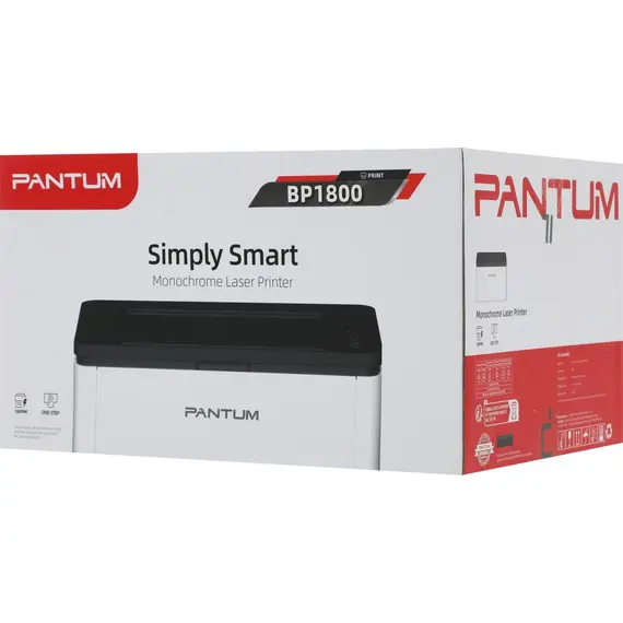 Принтер PANTUM A4, лазерный, черно-белый, 18 стр/мин, 600x600dpi, 500МГц, 32Мб, USB, 700стр/картридж, белый корпус, картридж TL-C2318H (BP1800)