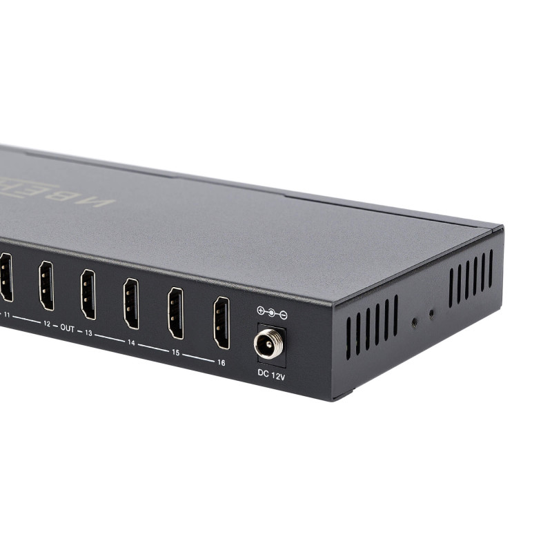 Позволяет одновременно распределять один входной HDMI-сигнал на 16 HDMI-дисплеев. Поддерживаемое разрешение видеосигнала достигает 4K2K@50/60Гц 4:4:4. Поддерживает расширенное управление EDID и функции HDR, HDR10, HDR10+, HLG и Dolby Vision.