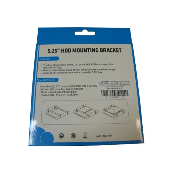 Описание    Крепление одного жесткого диска 3.5" или 2х SSD или HDD 2.5" в отсек 5.25"