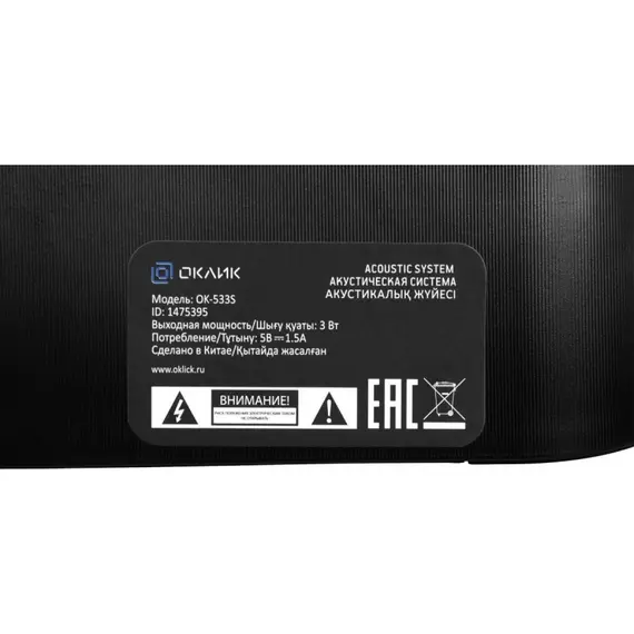 Саундбар OKLICK 2.0, 6 Вт, питание от USB, OK-533S, чёрный (1475395)