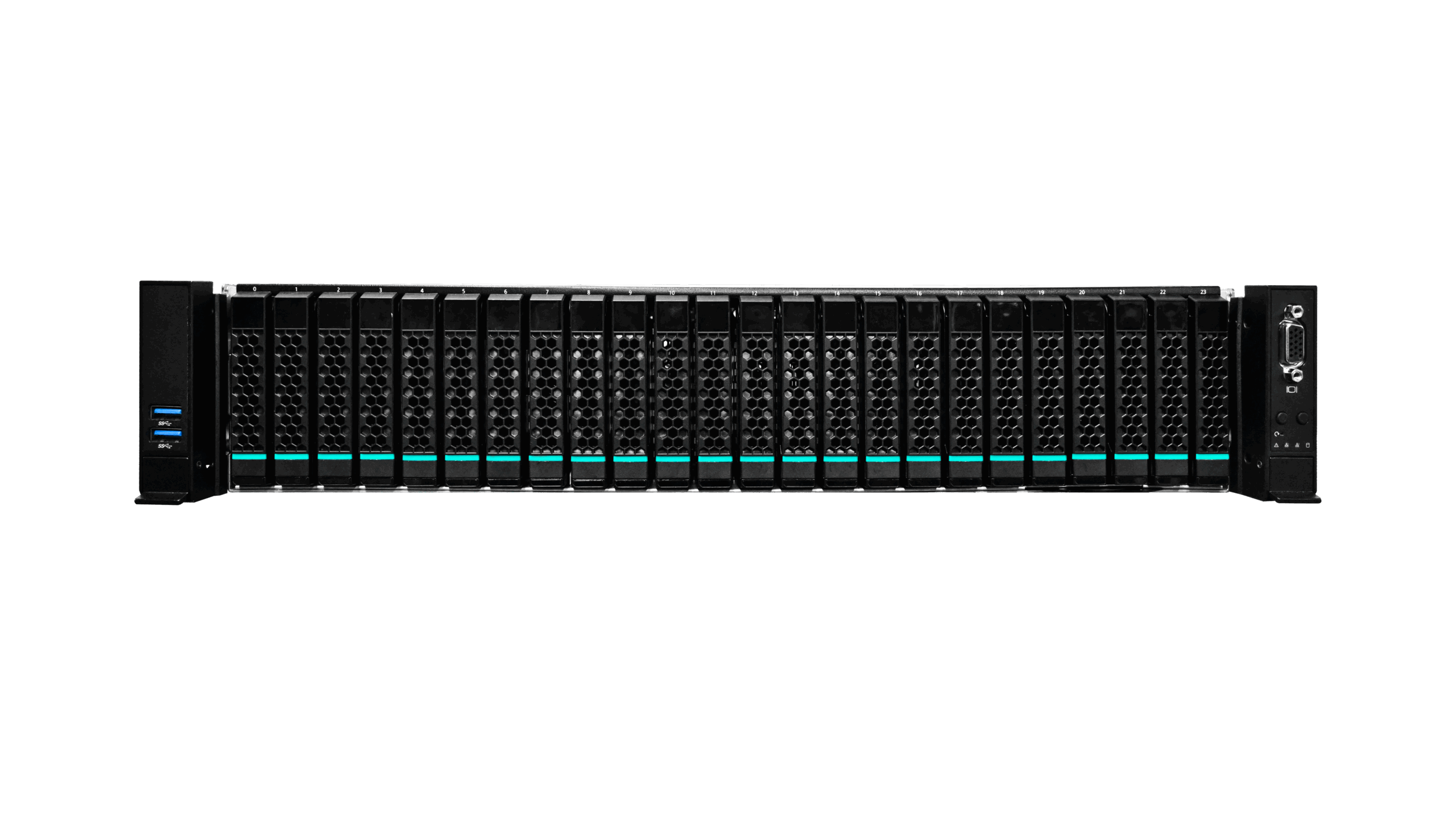 Для операционной системы и системного софта предусмотрены 2 дополнительных отсека 2.5" на задней панели. Это освобождает все фронтальные 24 слота исключительно под рабочие данные, упрощая обслуживание и повышая общую надежность системы.