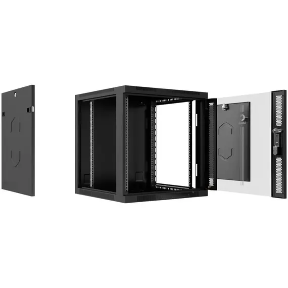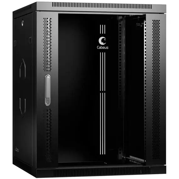 Шкаф настенный CABEUS телекоммуникационный разобранный 19" 15U 600x600x769mm (ШхГхВ) дверь стекло, цвет черный (RAL 9004) (SH-05F-15U60/60-R-BK)