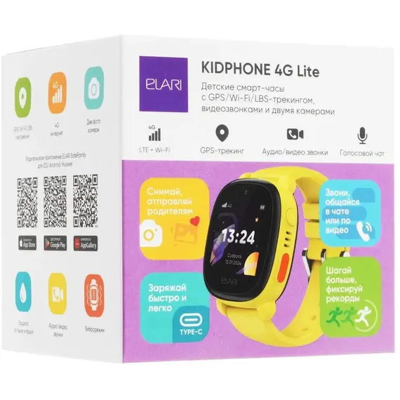 Смарт-часы детские ELARI 4G Lite телефон - желтые (KP-4G-L-YEL)