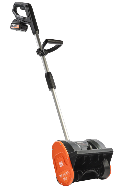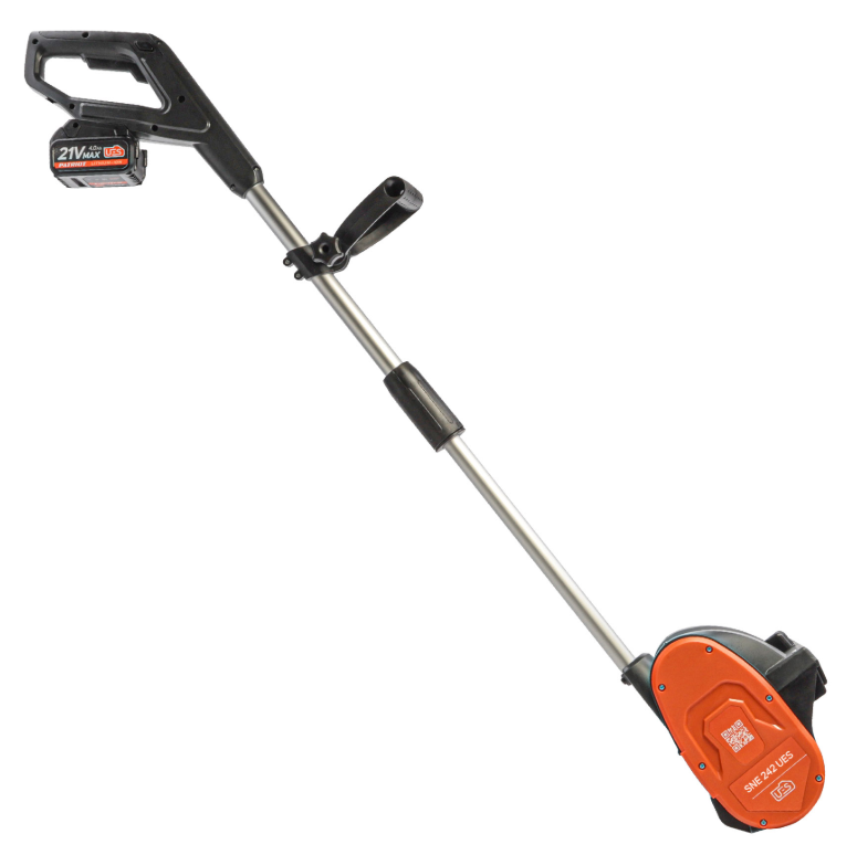 Аккумуляторный снегоуборщик SNE 242 аккуратно очистит площадки с декоративным покрытием и садовые дорожки, для эксплуатации на ровных поверхностях. Хватит, чтобы убрать небольшую придомовую территорию до 20 квадратных метров. Дальность выброса снега до 5 метров. Регулировка направления выброса снега специальным рычагом на ковше.