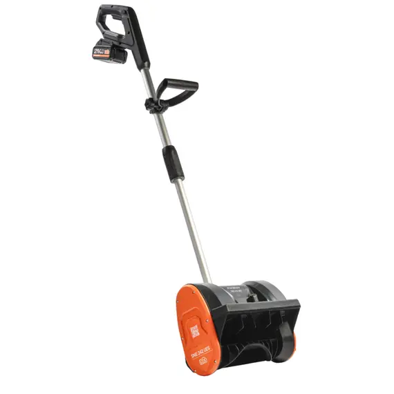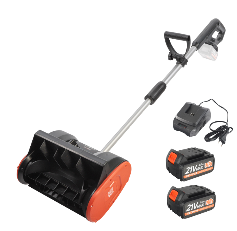 Одноступенчатый шнек (диаметр 11 см) из армированного пластика и удобный ковш (ширина 33 см). Корпус из ударопрочного ABS-пластика. Работа от литий-ионного аккумулятора единой аккумуляторной платформы UES до 20 минут. Время зарядки аккумулятора до 2 часов. Небольшие габариты и складная рукоять упрощают хранение.