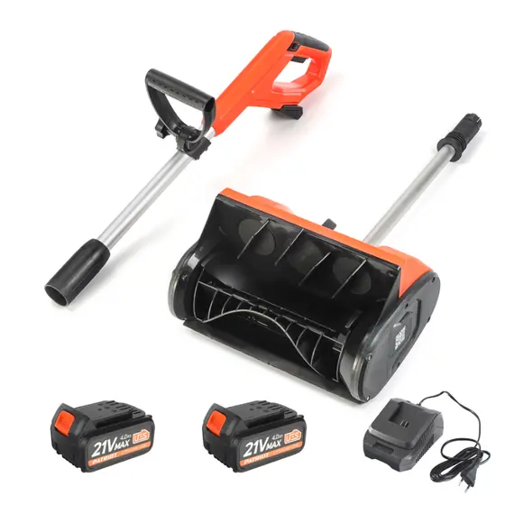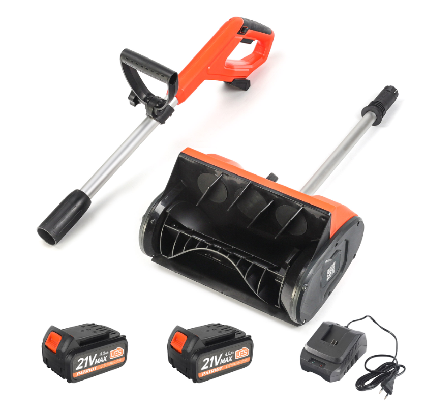 Одноступенчатый шнек (диаметр 11 см) из армированного пластика и удобный ковш (ширина 33 см). Корпус из ударопрочного ABS-пластика. Работа от литий-ионного аккумулятора единой аккумуляторной платформы UES до 20 минут. Время зарядки аккумулятора до 2 часов. Небольшие габариты и складная рукоять упрощают хранение.